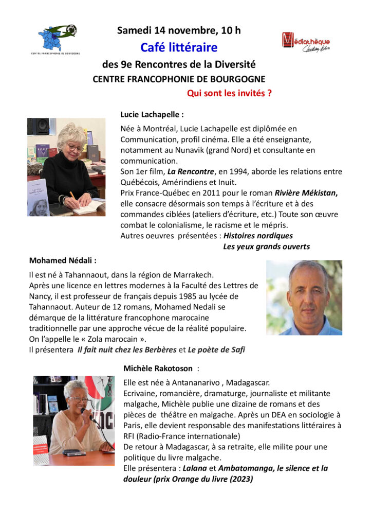 10h-12h Café littéraire à la médiathèque du Creusot. La parole aux écrivains présents